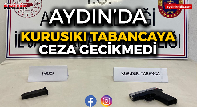 Aydın'ın Sultanhisar ilçesinde devriye görevi yapan jandarma ekipleri, şüpheli hareketler sergileyen bir kişiyi durdurarak üzerini aradı. N.C.K. adlı şahsın üzerinden kurusıkı tabanca çıkarken, belgesi olmadığı için 11.977 TL para cezası kesildi.