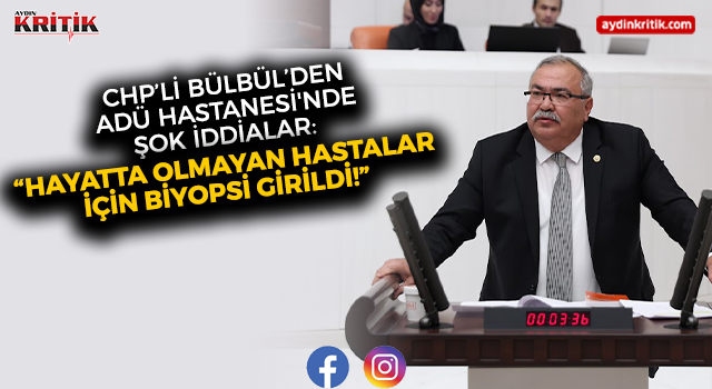 Cumhuriyet Halk Partisi (CHP) Aydın Milletvekili ve TBMM Adalet Komisyonu CHP Grup Sözcüsü Süleyman Bülbül, Adnan Menderes Üniversitesi (ADÜ) Tıp Fakültesi Hastanesi'nde yaşandığı iddia edilen büyük çaplı usulsüzlükleri Türkiye Büyük Millet Meclisi gündemine taşıdı.