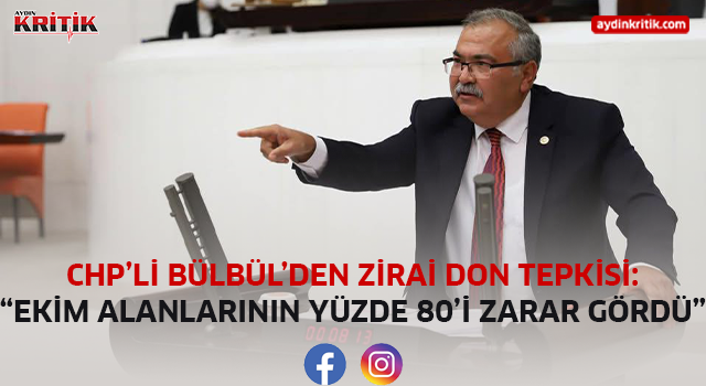 CHP Aydın Milletvekili ve TBMM Adalet Komisyonu CHP Grup Sözcüsü Süleyman Bülbül, İncirliova’da yaşanan zirai don felaketinin ardından pamuk tarlalarının yüzde 80’inin zarar gördüğünü belirterek, Tarım ve Orman Bakanlığı’na kapsamlı ve kalıcı önlemler alınması çağrısında bulundu.