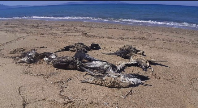Aydın’ın Kuşadası ilçesinde şiirlere de konu olan yelkovan kuşları, Kocagöl önündeki plajda ölü olarak bulundu.