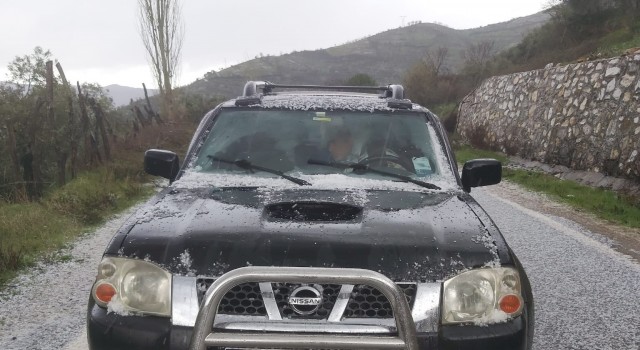 Aydın’da sabah saatlerinde başlayan yağışlı hava ovalarda yağmur, yüksek kesimlerde ise dolu şeklinde gerçekleşti. Aydın’ın Köşk ilçesine bağlı rakımı yüksek köylerde gerçekleşen dolu yağışı nedeniyle etraf kısa sürede beyaza büründü.